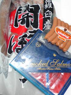 社員旅行で北海道に行くというので、お土産に大好きな「ほっけ」を頼んだら、スモークサーモンとソーセージまで一緒にクール宅急便で送られてきました!!